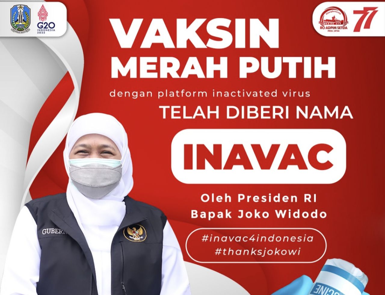 "Jadi vaksin yang dulu dikenal vaksin Merah Putih yang dikembangkan Unair dan PT Biotis sekarang sudah resmi menjadi Inavac," kata Khofifah di Gedung Negara Grahadi Surabaya, Senin (29/8/2022).