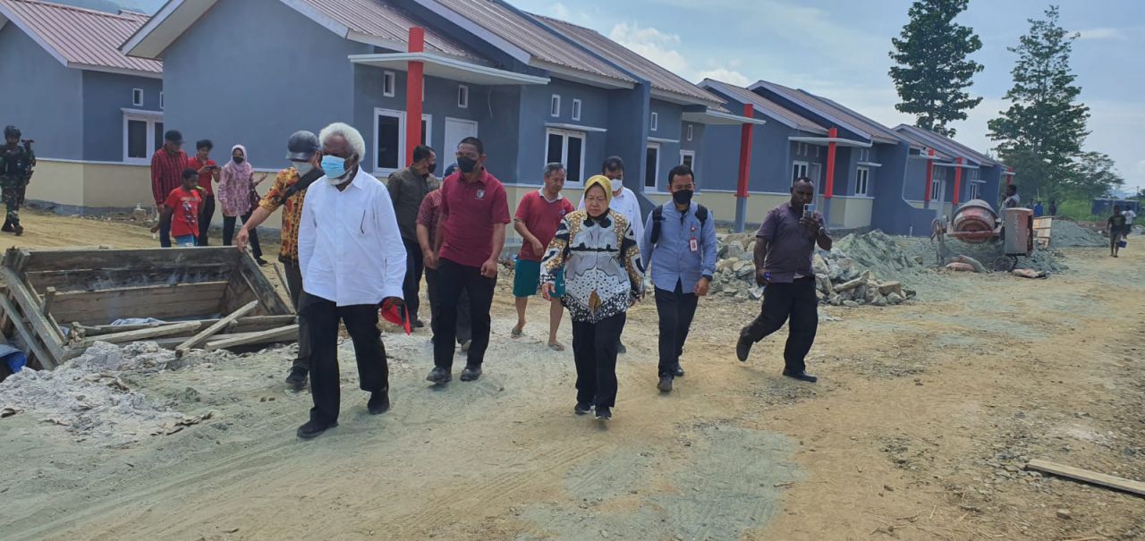 Risma yang tiba di Sentani pada 30 Agustus 2022 langsung meninjau progres pembangunan 76 unit rumah sehat yang akan diperuntukkan bagi korban banjir bandang Sentani pada tahun 2019 silam.