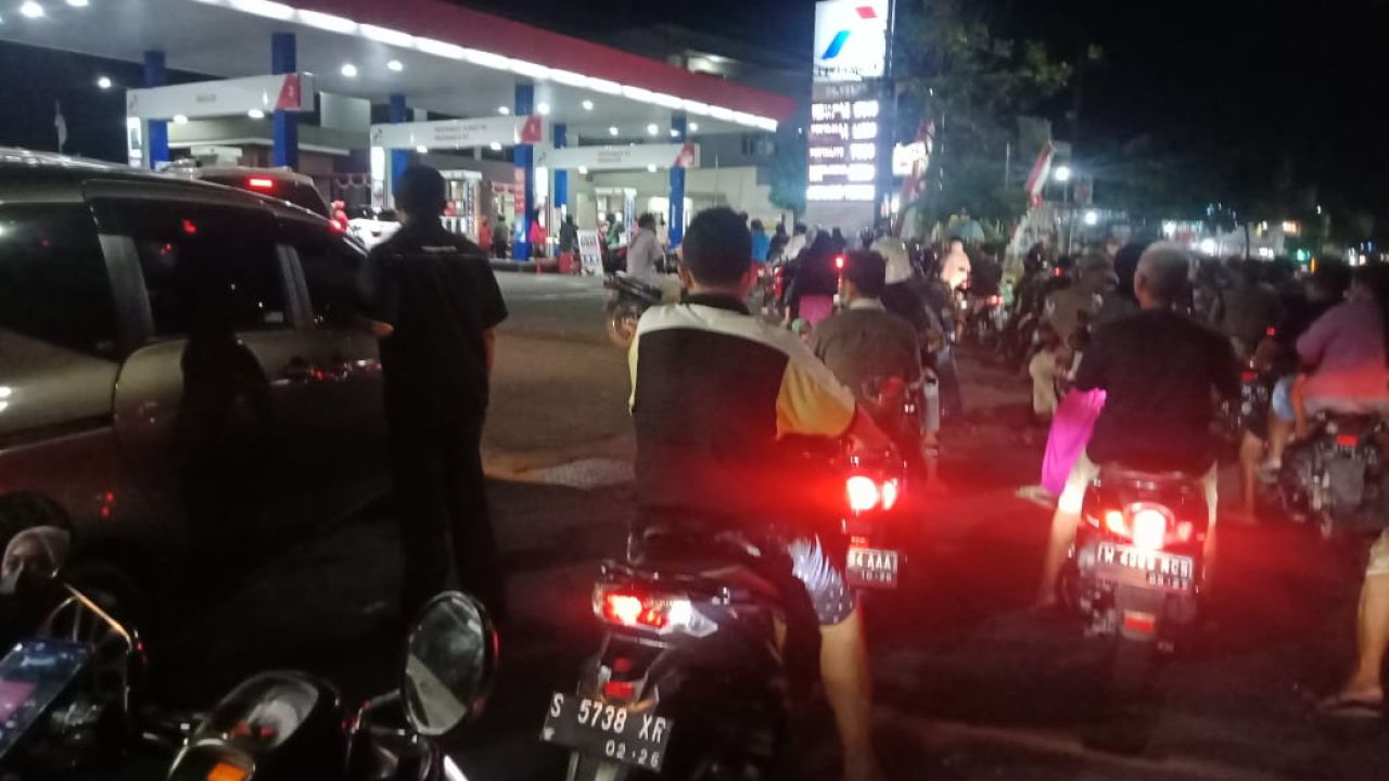 Pantauan selalu.id, sekitar pukul 21.00 WIB tampak antrean panjang mobil dan motor. Beberapa pengendara balik arah melihat papan yang bertulis 'Pertalite Sudah Habis Terima Kasih'