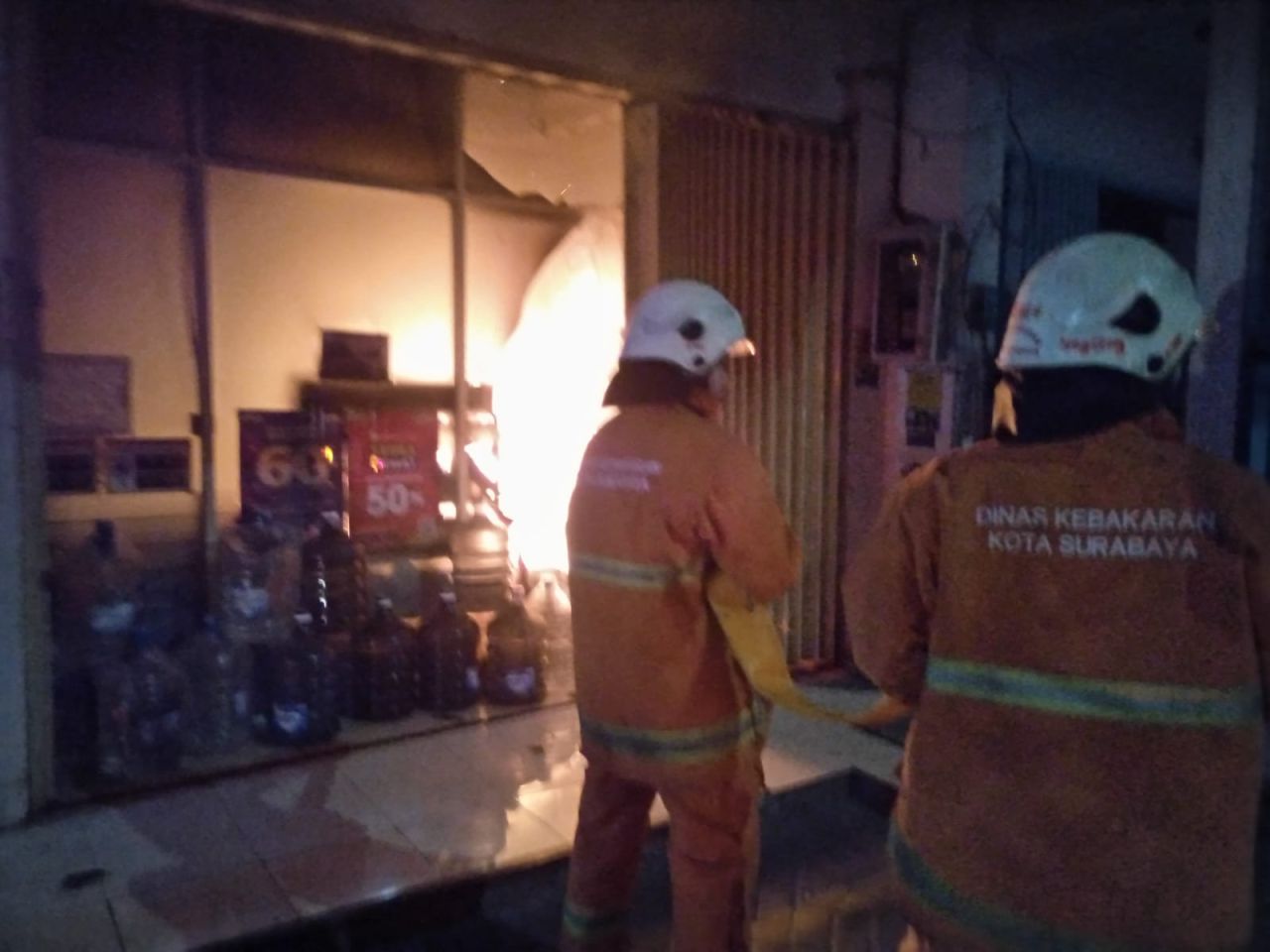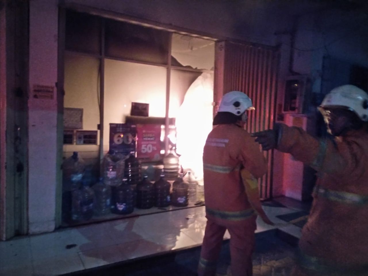"Dalam keadaan terkunci, petugas pemadam kebakaran mencoba membuka pintu (roling door) namun kaca indomaret sudah pecah," tulis keterangan pada Command Center 112.