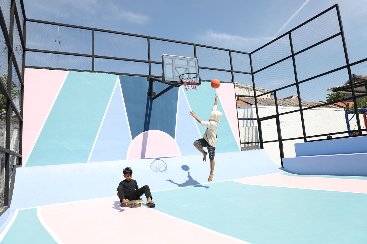 Bahkan, di depan pasar itu juga disediakan lapangan untuk bermain basket dan lainnya. Pengunjung pun bisa langsung nongkrong di pasar tersebut.