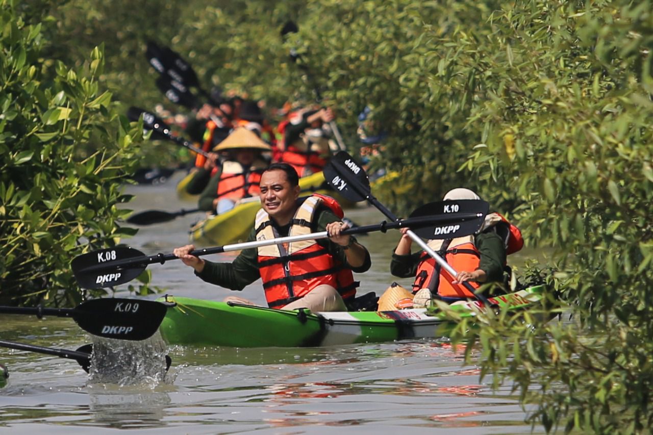 "Di wisata tersebut sangat luar biasa karena bisa lewat tengah-tengah mangrove pakai kano. Jadi, bisa merasakan indahnya mangrove dan indahnya alam di Surabaya," kata Eri, Senin (26/9/2022).