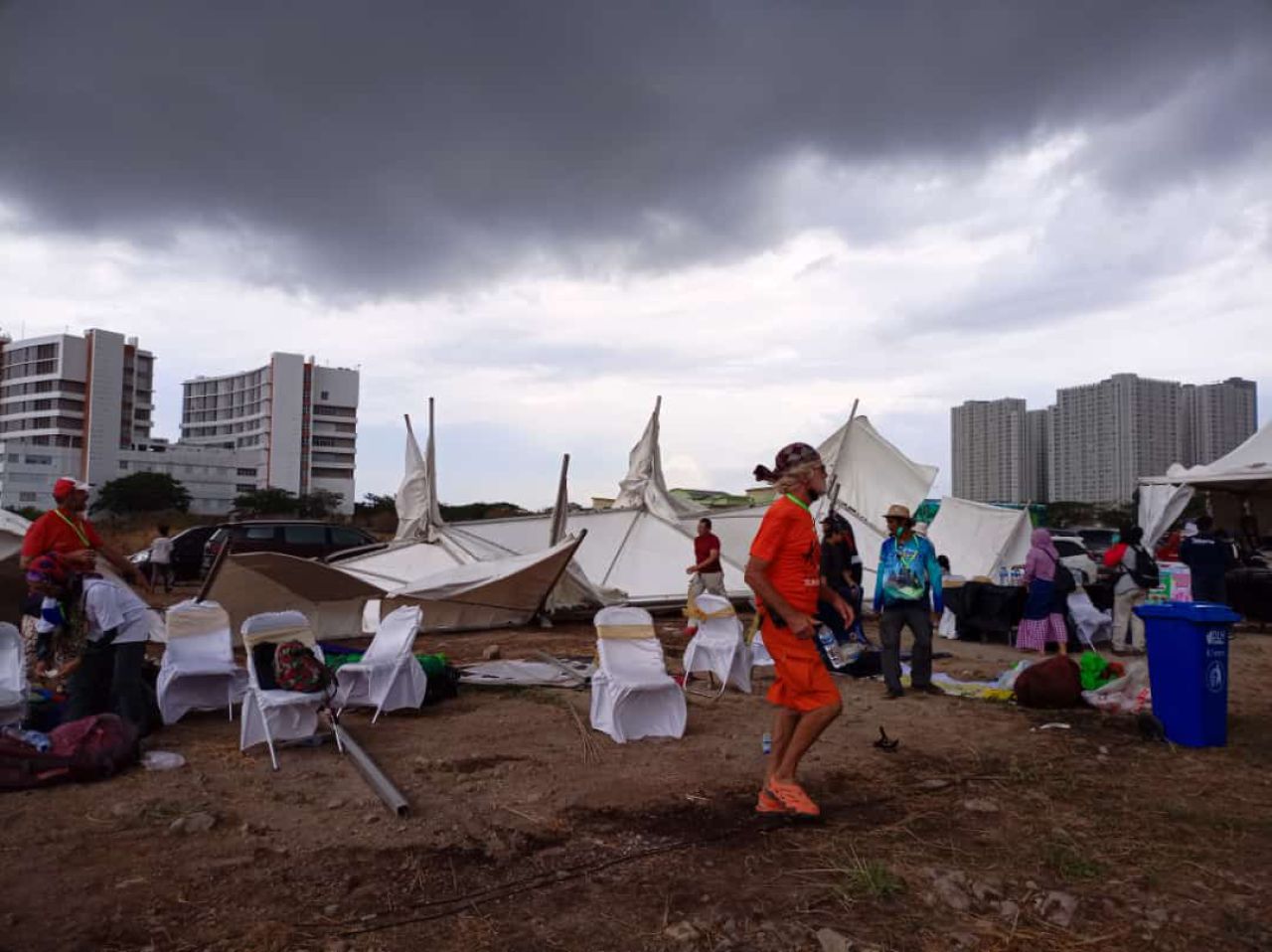 Dampak angin kecang tersebut membuat sejumlah tenda-tenda roboh. Bahkan, barang-barang milik peserta serta panitia di sekitar lokasi festival berterbangan.