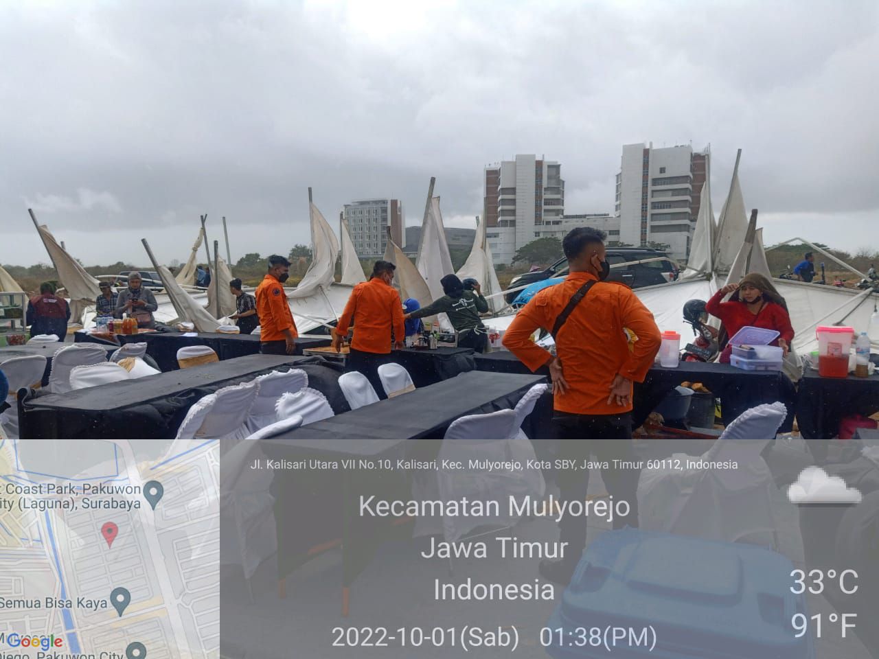 selalu.id - Festival layang-layang di Surabaya yang digelar di Long Beach Area Selatan, Pakuwon City, Surabaya dan dimulai hari ini, Sabtu (1/9/2022) terpaksa harus dibatalkan. Lantaran, kondisi cuaca tidak mendukung. Angin kencang menerjang merobohkoan tenda-tenda peserta dan panitia.