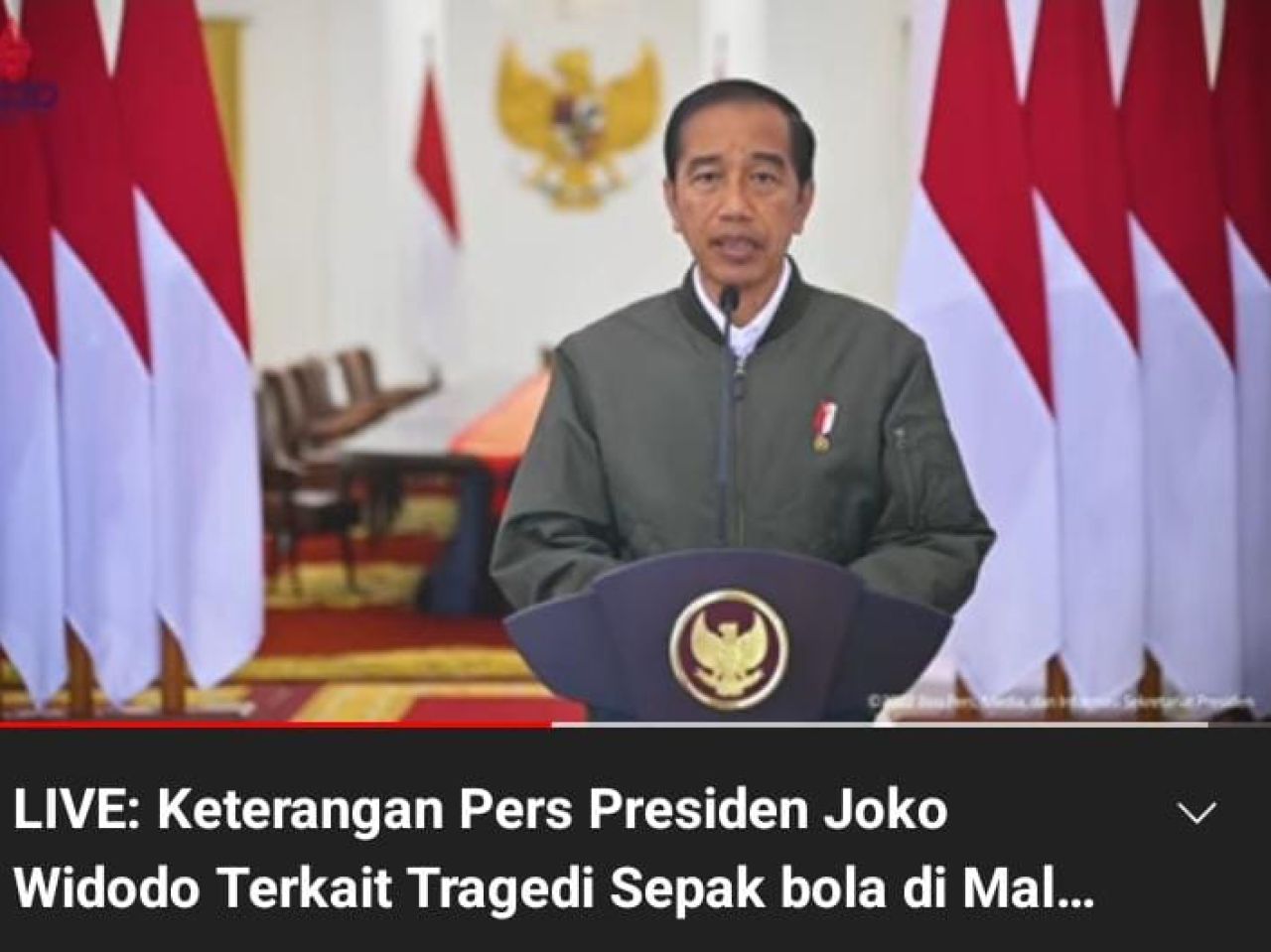 "Saya juga memerintahkan PSSI untuk menghentikan sementara Liga 1 sampai evaluasi dan perbaikan prosedur pengamanan dilakukan,"kata Presiden Jokowi, melalui keterangan persnya yang diunggah melalui akun YouTube Sekretariat Presiden, Minggu (2/10/2022).