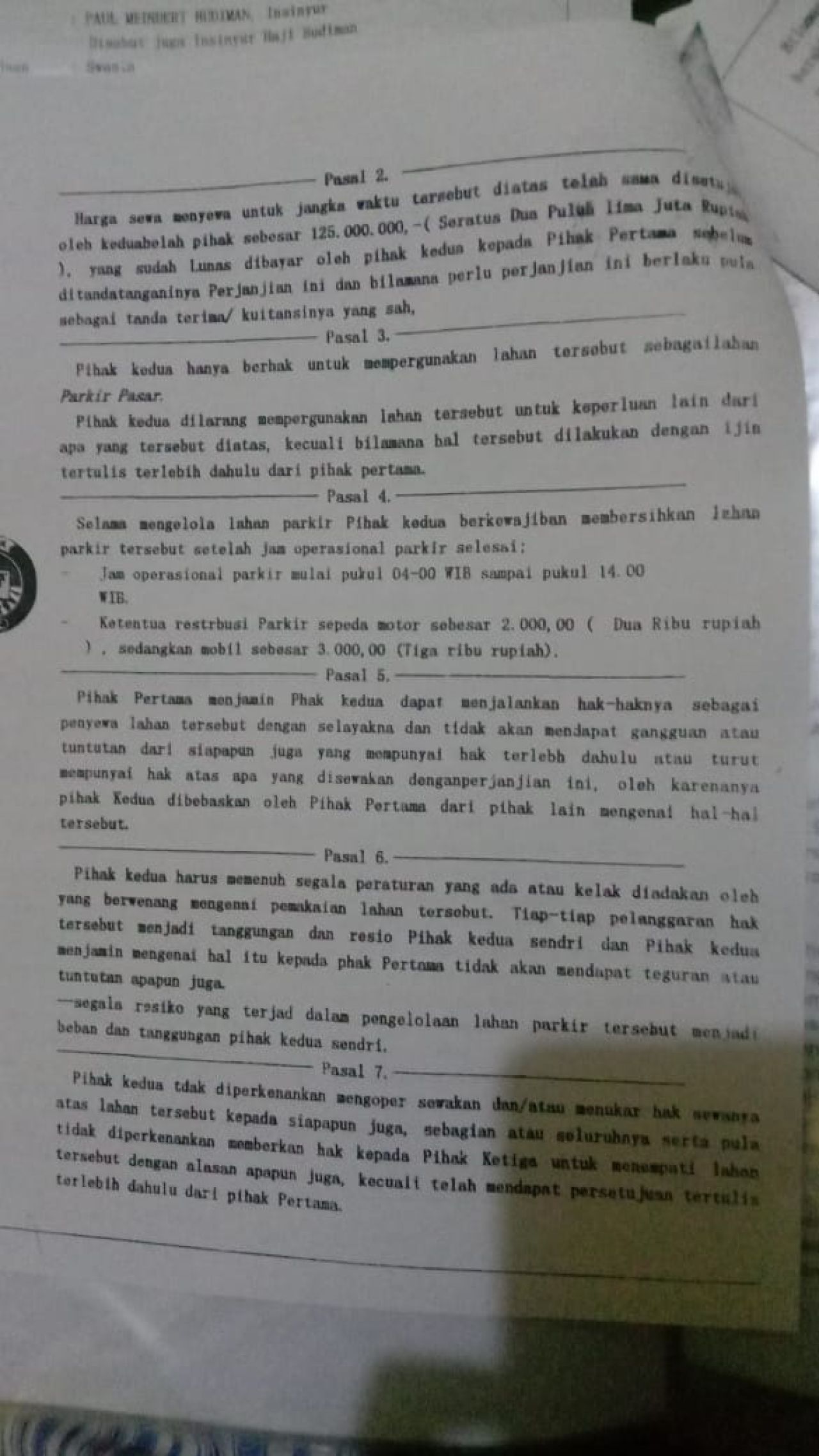 Priya menerangkan, bahkan pengelolaan parkir sudah ada kesepakatan bersama mengenai Khodim dan Lasmi sebagai pengelolaan Pasar Semolowaru sesuai dengan pengurus koperasi, yaitu membayar biaya sewa kepada Pemkot Surabaya sebesar Rp. 388 juta. Dan Khodim menawarkan rumah yang akan digadaikan ke Bank BRI untuk pembayaran sewa sebesar Rp. 388 juta tersebut.