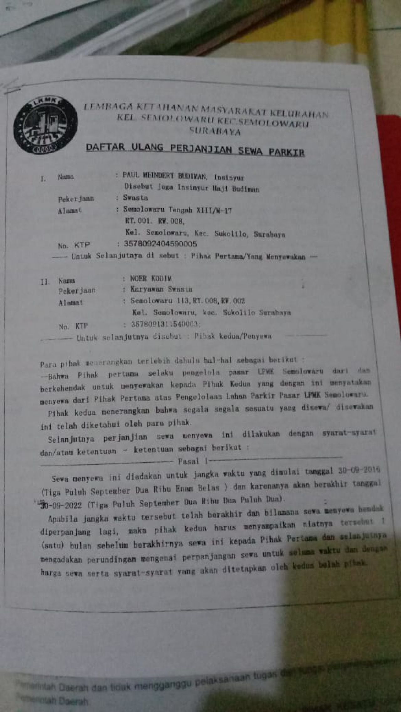 Kenyataan tersebut benar setelah LPMK mengeluarkan perjanjian sewa mulai periode 2016 sampai 2022 dengan biaya sebesar RP. 125.000.000 rupiah secara sah. Dan persoalan tersebut tidaklah ditelaah dengan baik oleh pihak bagian hukum Pemkot Surabaya.