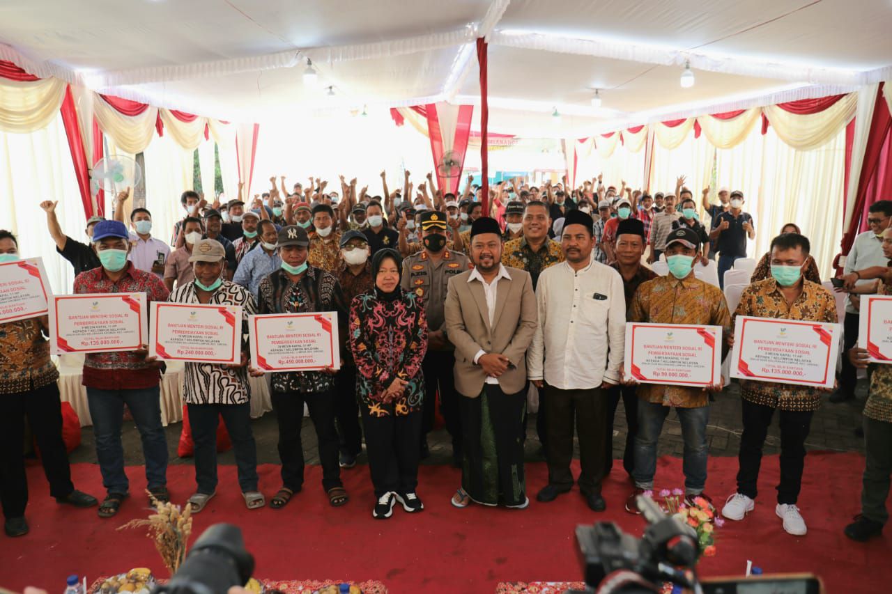 selalu.id - Menteri Sosial Tri Rismaharini sambangi Balai Purbo, Kabupaten Gresik, Jawa Timur untuk memberikan bantuan mesin perahu kepada kelompok nelayan. Bantuan tersebut merupakan realisasi kunjungan Presiden dan Menteri Sosial RI sebelumnya di Gresik pada 20 April 2022.