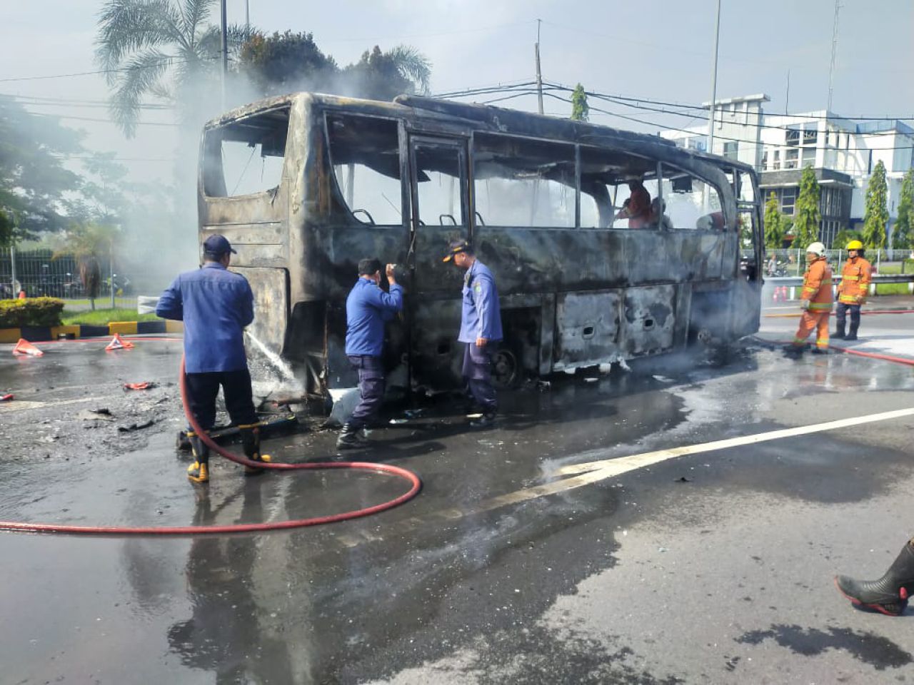 Beruntung, seluruh penumpang bus tersebut tidak mengalami luka, kata Hidayat, mereka hanya mengalami shock karena peristiwa kebakaran itu.