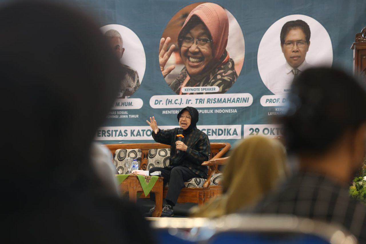 selalu.id - Menteri Sosial Tri Rismaharini tampil sebagai keynote speaker pada acara Characterpreneurship Seminar Nasional Series V yang diselenggarakan Universitas Katolik Darma Cendika (UKDC), Surabaya.