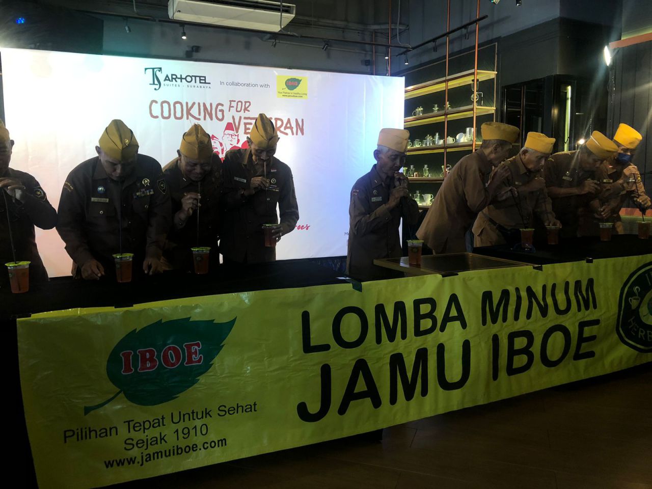 Serunya Veteran Perang Lomba Minum Jamu di ARTOTEL TS Suites Surabaya