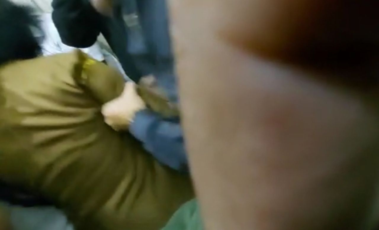 Tak puas berteriak, Eri kemudian mencengkeram lengan wanita tersebut sembari mendorong dengan kasar hendak menunjukkan kondisi pelayanan RSUD dr Soewandhi di bawah.