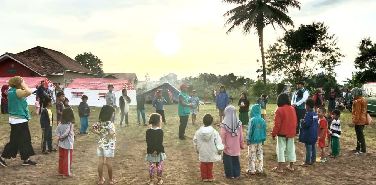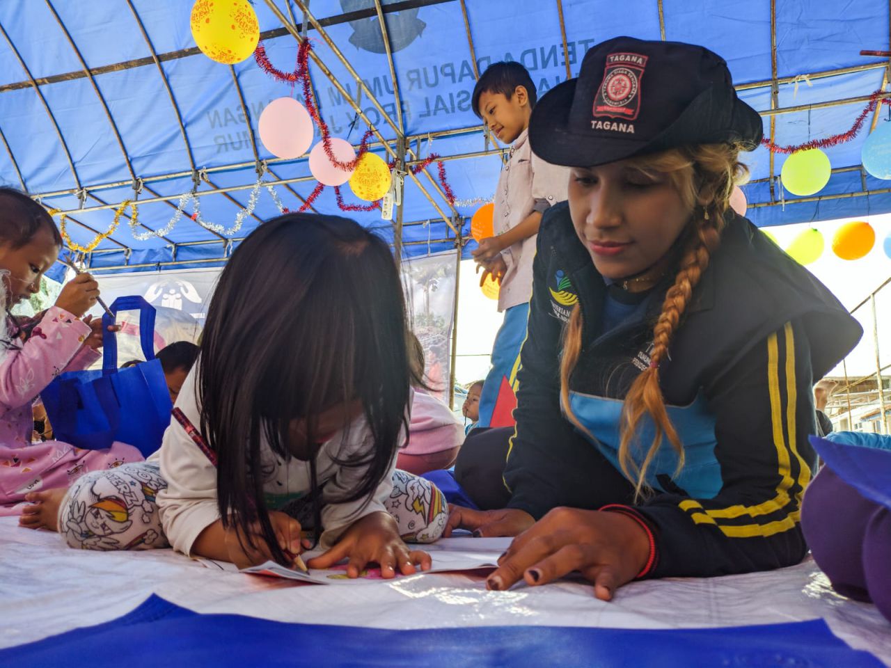 Umar Faqeh, misalnya, anggota Tagana Jatim yang mendapat tugas di posko LDP Lapangan Crius, Desa Mangunkerta, Kecamatan Cugenang ini, mengelaborasi rutinitas harian yang dilakukannya bersama anak-anak penyintas di tenda LDP.