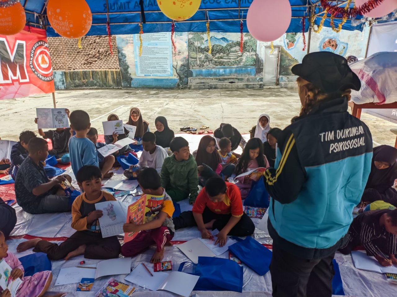 "Kami menghibur, memberikan layanan dukungan psikososial bagi anak-anak penyintas bencana supaya mereka senang, mereka bisa melupakan rasa takut, rasa cemas yang mereka alami," kata petugas LDP dari STPL di Bekasi, Wisnu Permana.