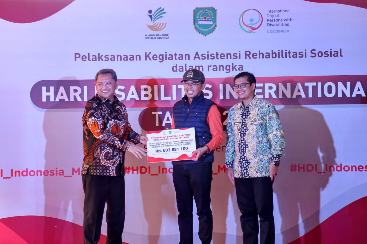 Khusus di Subang, Kemensos melalui Sentra Terpadu Inten Suweno menyerahkan bantuan senilai Rp603 juta untuk program Indonesia Melihat, Indonesia Melangkah, dan Indonesia Mendengar. Sedangkan operasi katarak disediakan bagi 100 orang dan bebas pasung bagi 15 orang.