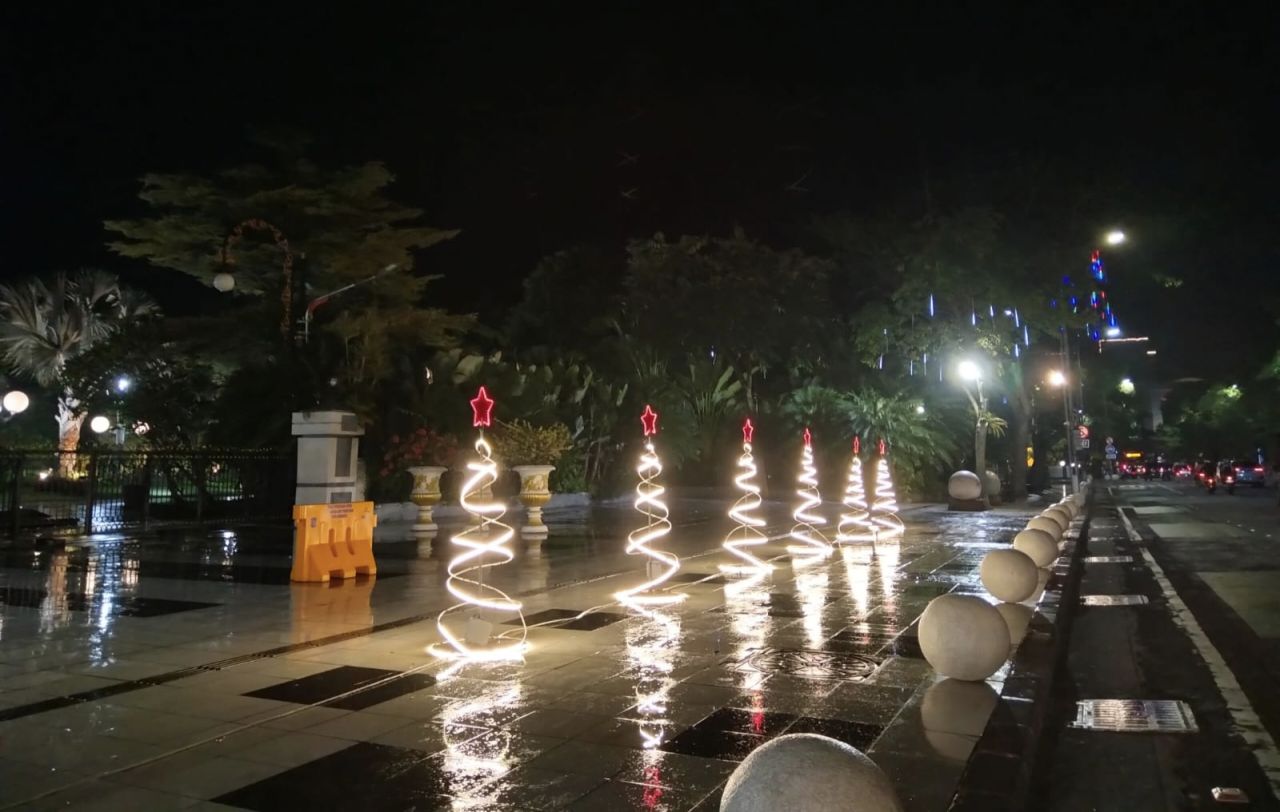 selalu.id - Pemerintah Kota Surabaya menghias jalanan kota dengan ornamen lampu-lampu berbentuk pohon natal. Ini dalam rangka menyambut hari raya umat Kristiani.