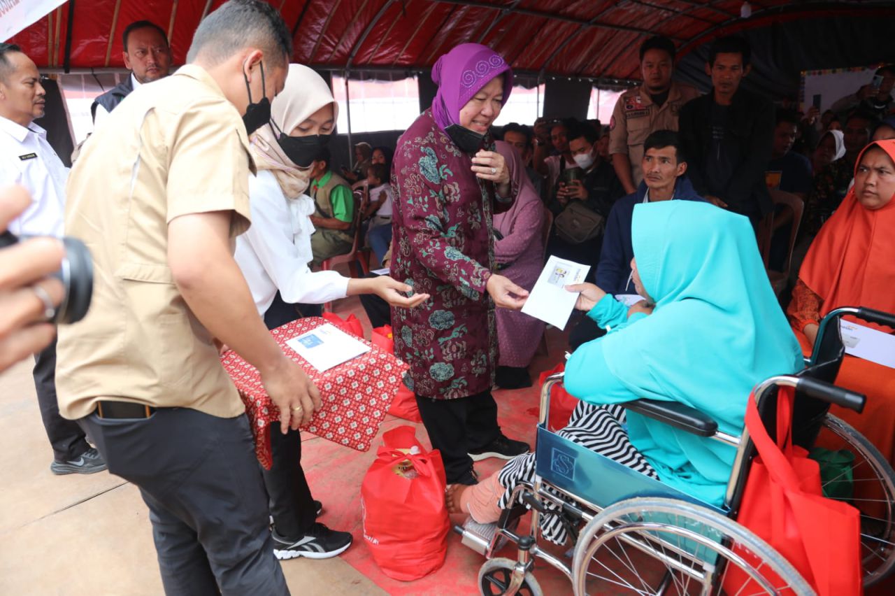 Pada giatnya ke Warungkondang, Mensos meninjau langsung proses penyaluran santunan. Adapun santunan disalurkan dengan metode _cash transfer_ dimana masyarakat dibuatkan rekening tabungan dan ATM untuk mengambil dana.