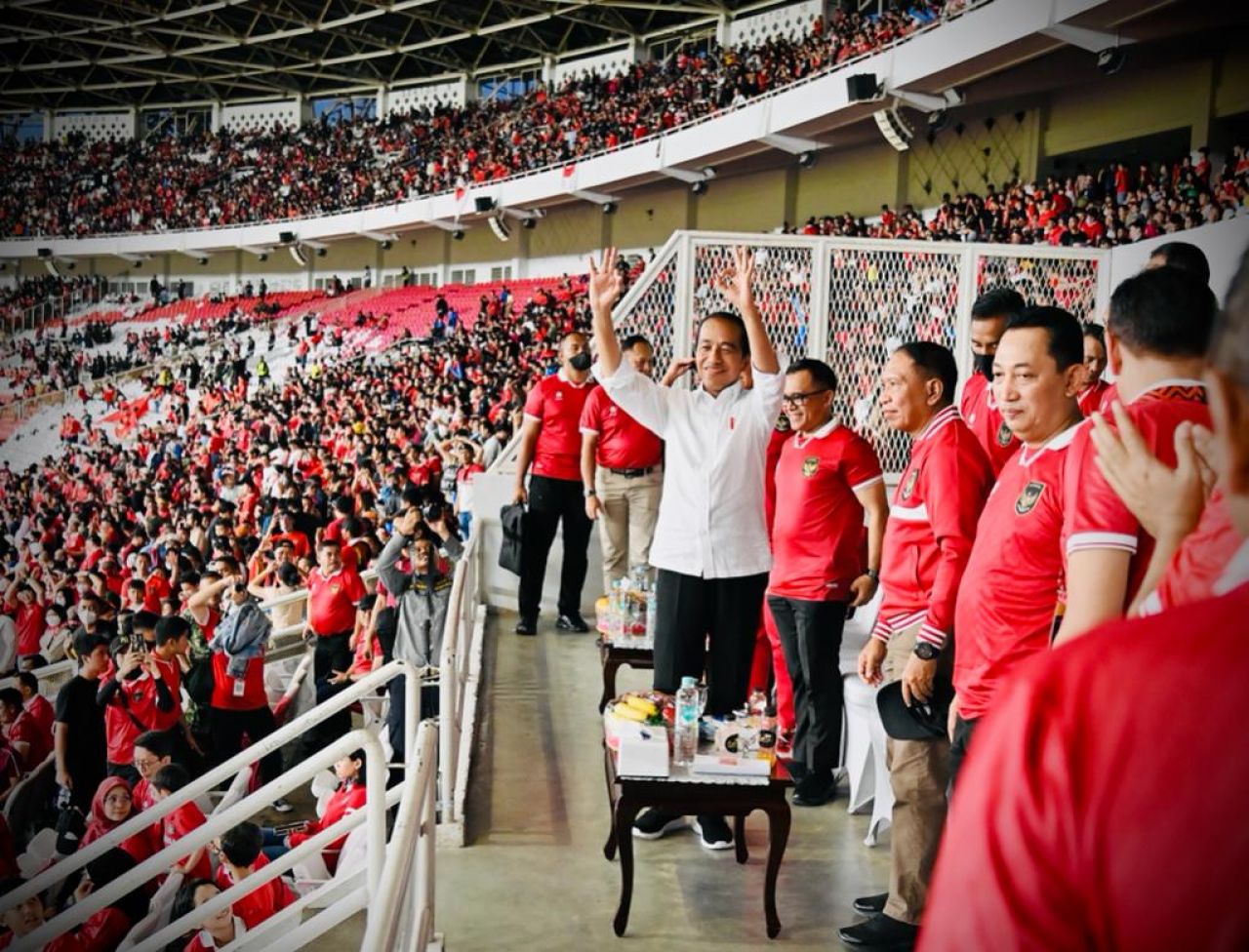 selalu.id - Presiden Joko Widodo menyaksikan secara langsung laga semifinal leg pertama Piala AFF antara tim nasional sepak bola Indonesia dengan Vietnam di Stadion Utama Gelora Bung Karno (GBK), Jakarta, pada Jumat sore, 6 Januari 2023. Presiden mengapresiasi kerja keras para pemain timnas saat melawan Vietnam hari ini.