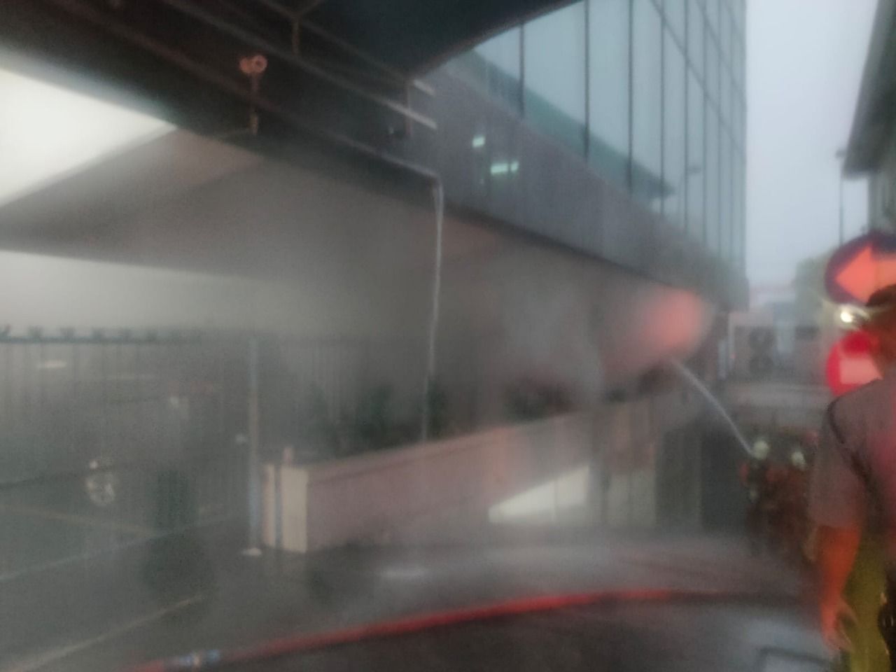 Melalui keterangan petugas keamanan, saat sedang melakukan patroli, melihat sebuah kobaran api yang sudah membesar di gedung tersebut.