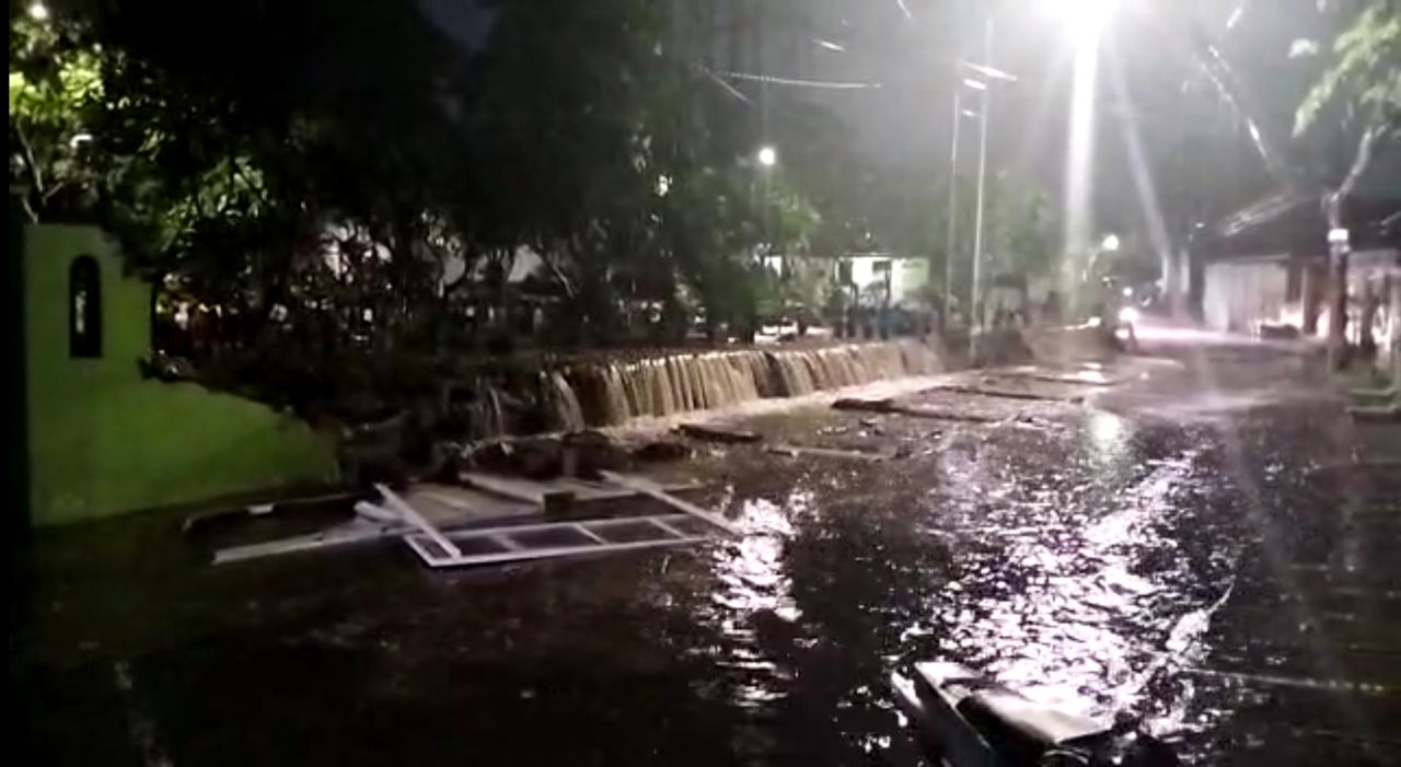 Sementara itu tembok makam di Menur ambruk lantaran terimbas tingginya curah hujan. Tembok makam sepanjang 20 meter ambruk dan terlihat aliran air deras keluar dari makam. (Ade/SL1)