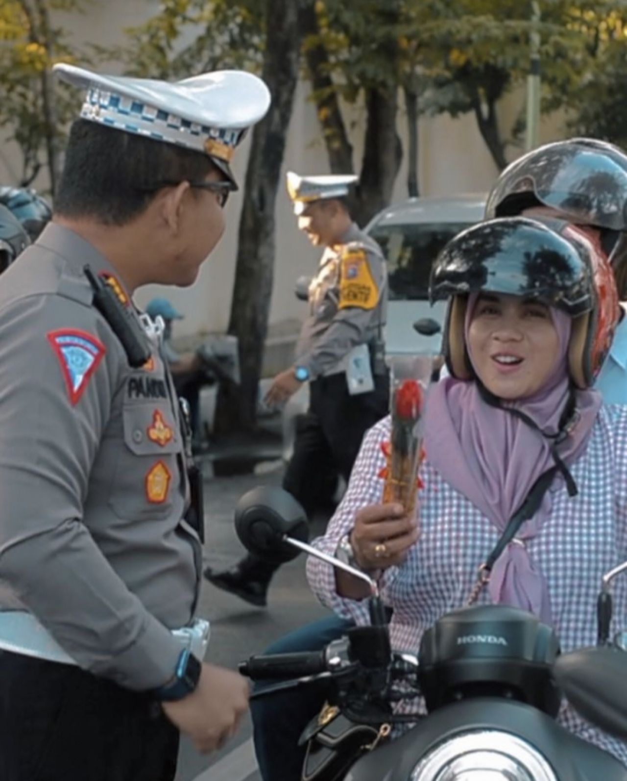 selalu.id - Polisi di Probolinggo bagi-bagi bunga dan cokelat kepada pengendara pada peringatan hari Valentine, Selasa (14/2/2023). Pemberian ini sebagai bentuk penghargaan polisi kepada masyarakat yang patuh dan tertib berlalu lintas.