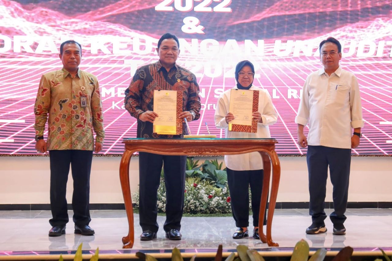 Adapun Kemensos dan BPK menggelar acara Penyerahan Laporan Hasil Pemeriksaan Kepatuhan Atas Pengelolaan dan Pertanggungjawaban Belanja Bantuan Sosial Penanganan Covid-19 Lanjutan Tahun 2022 Kementerian Sosial dan Instansi Lain Terkait di Provinsi Dki Jakarta, Jawa Tengah, Jawa Timur dan Sumatera Utara dan Penyerahan Laporan Keuangan Kementerian Sosial Tahun 2022 Unaudited.