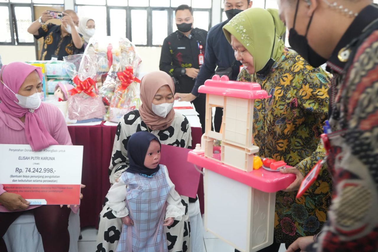 selalu.id - Menteri Sosial Tri Rismaharini menyerahkan bantuan yang dihimpun melalui kitabisa.com kepada 6 penerima manfaat yang saat ini sedang menderita berbagai penyakit berat ataupun langka. Penyerahan bantuan dilakukan di Sentra "Wyata Guna" Bandung (21/02).