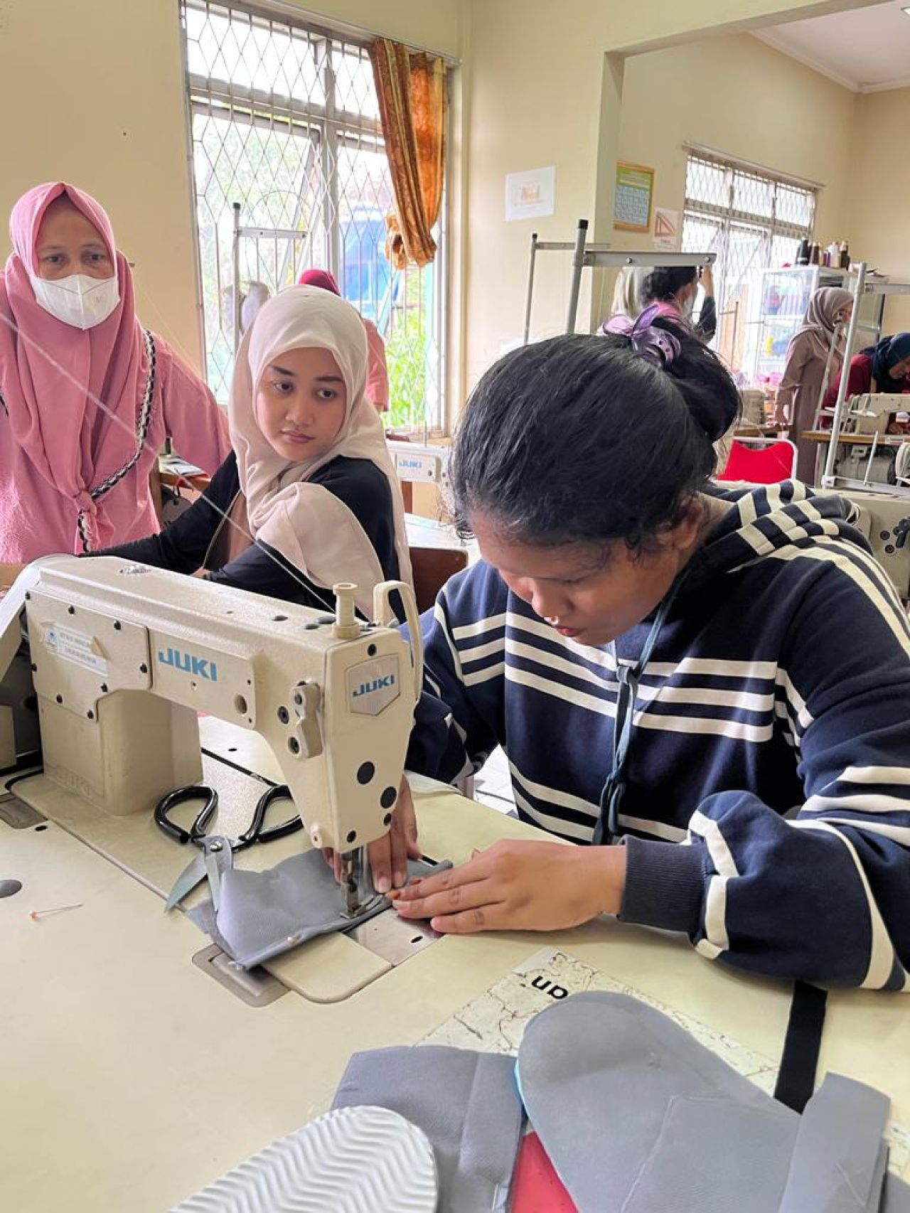 Pelatihan yang melibatkan instruktur dari Sentra Mulya Jaya Jakarta ini diisi dengan praktik dasar membuat pola hingga pembuatan sandal hotel. Selama pelatihan, warga terlihat antusias mengikuti setiap tahapannya.