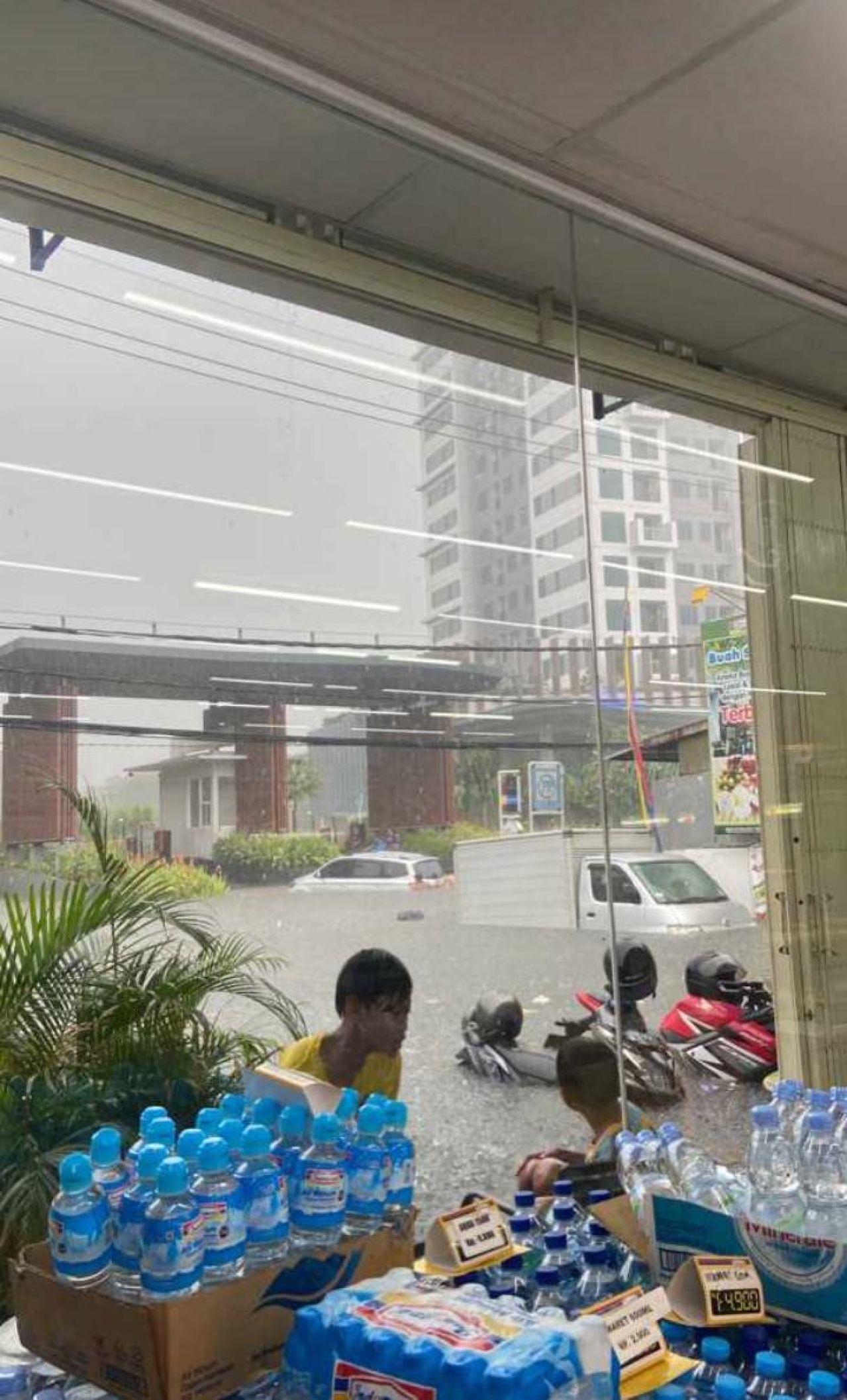 "Banjir Kabeh kampungku. Indomaret kelem (banjir semua kampungku, Indomaret tenggelam)," ujarnya kepada selalu.id.