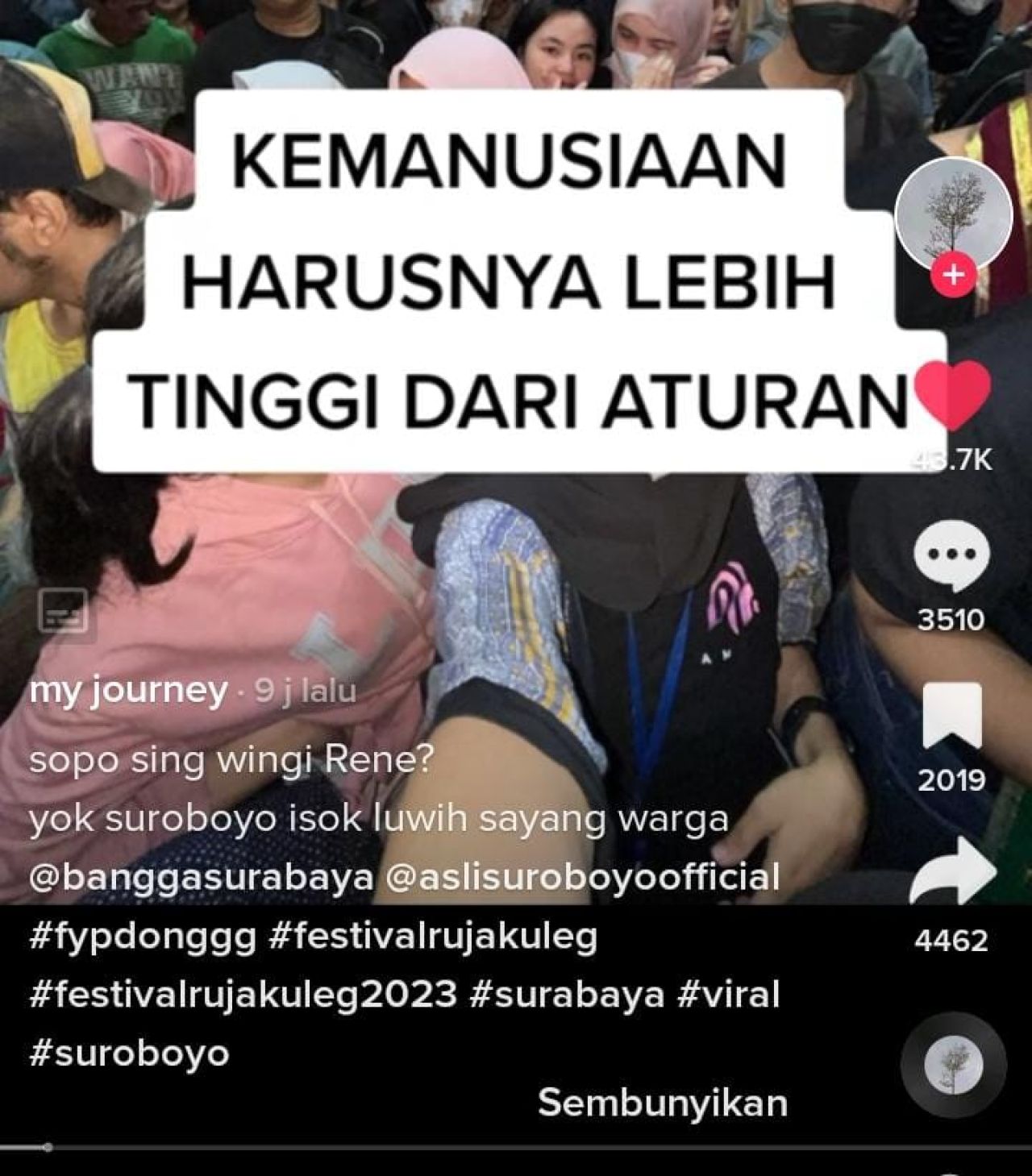 Akun tersebut juga mengungkapkan bahwa ribuan masyarakat awalnya antusias menghadiri Festival itu. Namun antusias tersebut berubah saat masyarakat berdesak-desakan ingin sekedar melihat acara Festival tahunan khas Surabaya tersebut. Bahkan, ada yang pingsan lantaran lemas.
