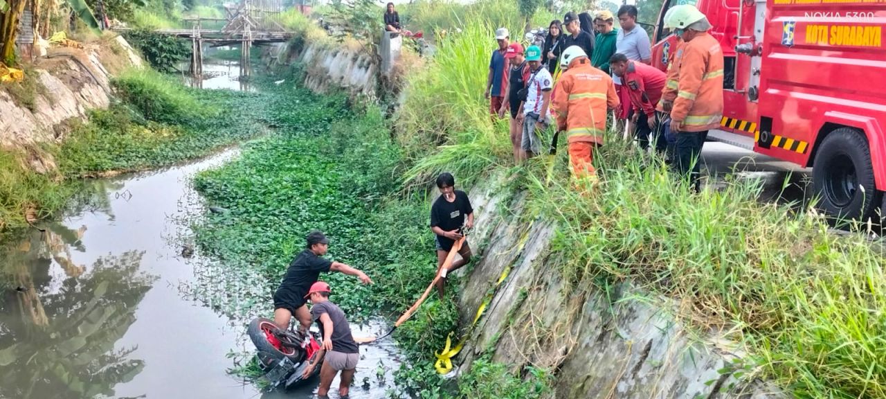 "Karena kaget, korban oleng dan masuk ke sungai," tulis laporan DPKP Surabaya kepada selalu.id.