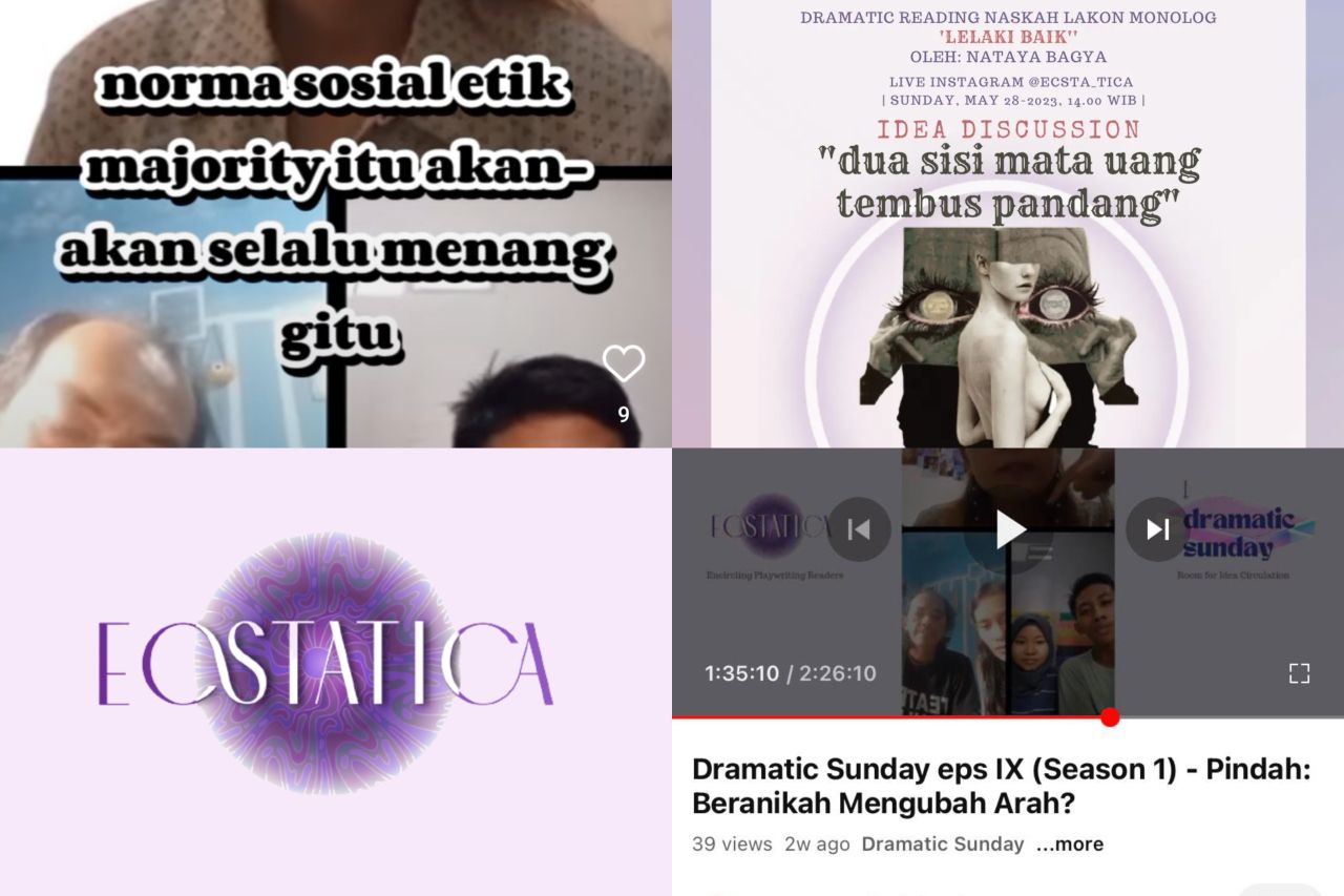 Untuk itu, sejak enam bulan lalu, Ecstatica getol mendekatkan naskah lakon pada pembacanya, yakni dengan mengadakan program Dramatic Sunday yang dilaksanakan per dua minggu sekali, dan telah berjalan selama 13 episode. Program Dramatic tersebut dilakukan daring melalui siaran live Instagram @ecsta_tica, yang nantinya juga akan diupload ke Youtube.