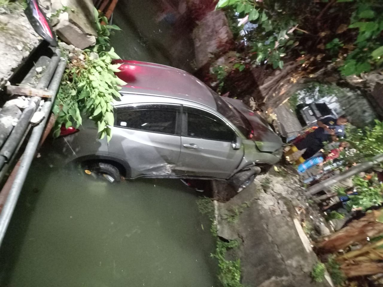Honda HRV di Surabaya Nyebur Selokan usai Nabrak Motor
