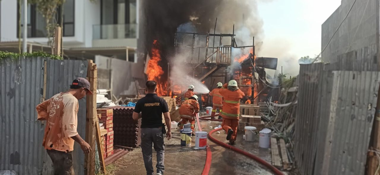 selalu.id - Sebuah gudang logistik sekaligus tempat istirahat karyawan yang berada di Perum Dian Istana Park Avenue C8, Wiyung, Sudabaya, hangus terbakar, Jumat (11/8/2023).