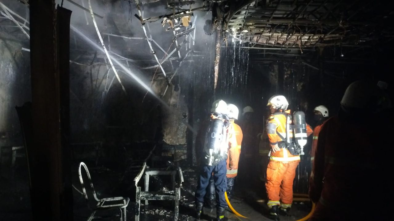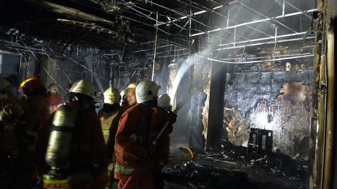"Satpam bergegas mengambil apar di pos. Api sudah membesar di Lantai 1 ruangan mudah terbakar karena dekorasi ruangan, banyak partisi bahan HPL, lukisan kanvas,serta kelambu,"tertulis dalam laporan Damkar.