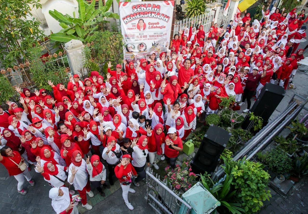 selalu.id - Kader PDI Perjuangan (PDIP) M. Eri Irawan mengikuti senam bersama lebih dari 150 ibu-ibu. Mereka merupakan perwakilan dari delapan kelompok senam yang ada di wilayah Kelurahan Menur Pumpungan dan Klampis Ngasem, Kecamatan Sukolilo.