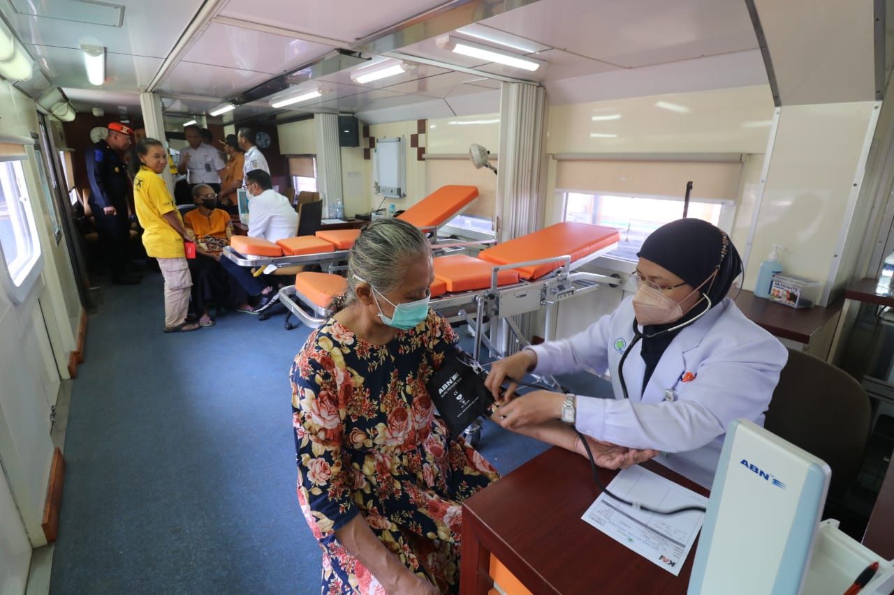 selalu.id - KAI Daop 8 Surabaya memberikan layanan kesehatan kereta sehat atau Rail Clinic untuk ratusan warga Sidotopo secara gratis, Kamis (21/9/2023).