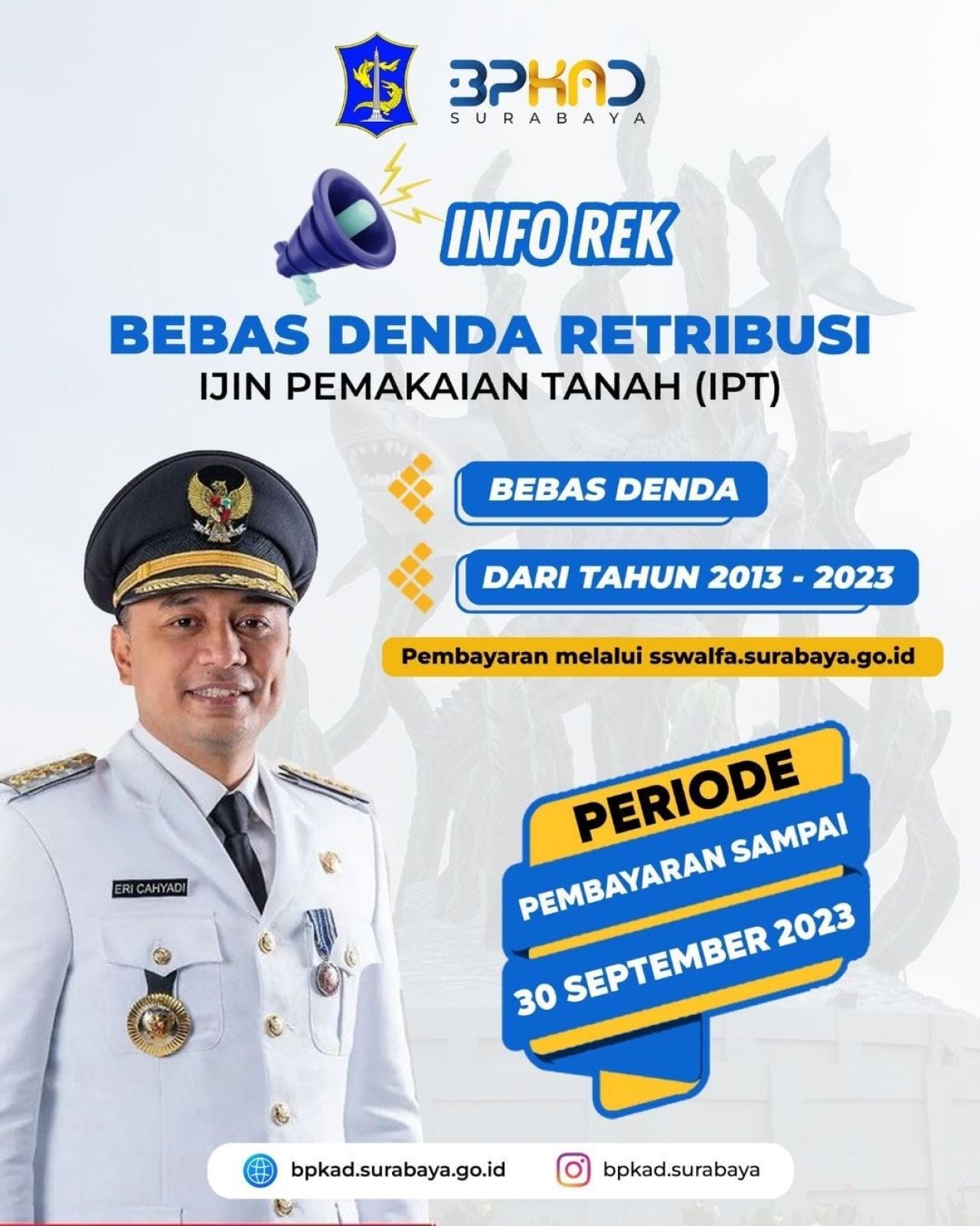 Ia juga menegaskan bahwa pembebasan denda retribusi IPT ini berdasarkan Peraturan Wali Kota (Perwali) Surabaya nomor 88 tahun 2023. Kali ini, denda yang akan dihapus mulai 2013-2023, sehingga kalau ada sebelum tahun 2013 tidak bisa dihapuskan.
