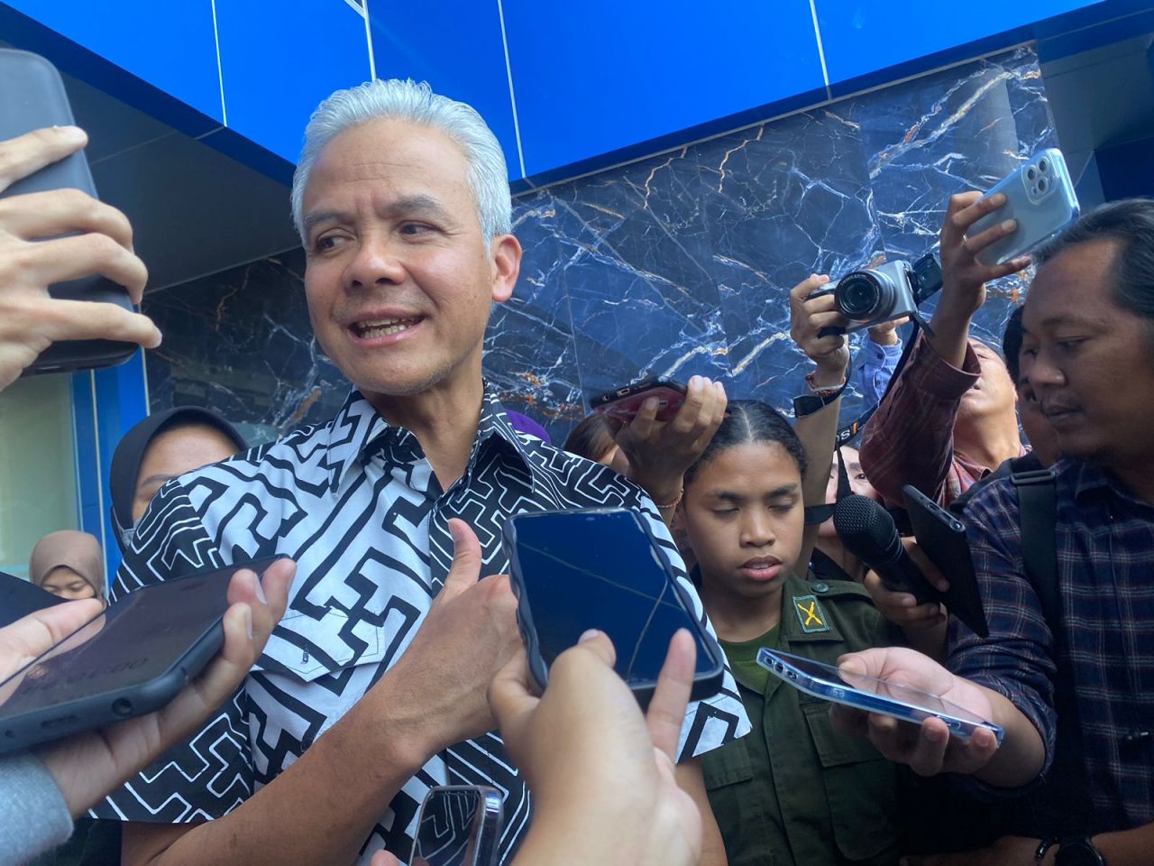 Saat di Surabaya, Ganjar Pranowo menanggapi isu Menteri Koordinator Bidang Politik, Hukum, dan Keamanan Indonesia (Menko Pulhukam) itu akan menjadi Cawapres untuk mendampingi dirinya di kontestasi Pemilu 2024.