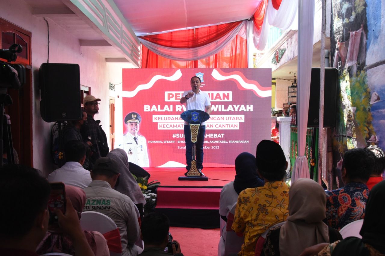 Pada kesempatan itu, Wali Kota Eri menjelaskan bahwa peresmian Balai RW ini sebenarnya untuk mengingatkan kembali kepada Ketua RT, Ketua RW, LPMK dan seluruh Kader Surabaya Hebat bahwa merekalah sebenarnya pemimpin sejati. Makanya, kalau Surabaya ingin bagus ke depannya, pemimpin sejati ini harus adil kepada semuanya.
