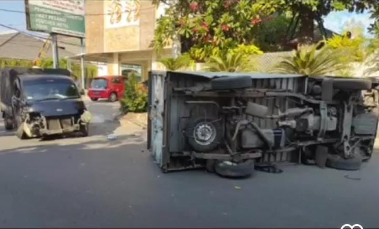 Nekat Salip Motor, Mobil Box di Surabaya Tabrak Pikap hingga Terbalik