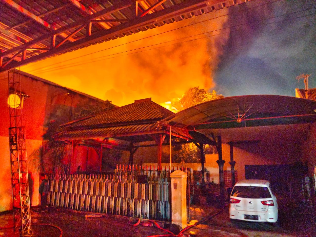 "Saat itu dia membangunkan pemilik pabrik dan terlihat asap hitam pekat. Seketika itu muncul api langsung membesar," kata Dedik melalui laporannya.