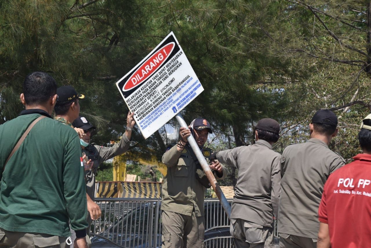 Para petugas gabungan yang terdiri dari Satpol PP, Dinas Lingkungan Hidup (DLH), Dinas Perhubungan (Dishub), Badan Penanggulangan Bencana Daerah (BPBD), Dinas Perumahan Rakyat dan Kawasan Permukiman serta Pertanahan (DPRKPP), Dinas Sumber Daya Air dan Bina Marga (DSDABM), Koramil Kenjeran/Bulak, Polsek Kenjeran/Bulak, kelurahan, serta kecamatan turut serta melakukan penertiban di area Pantai Batu-Batu Kenjeran Kota Surabaya.