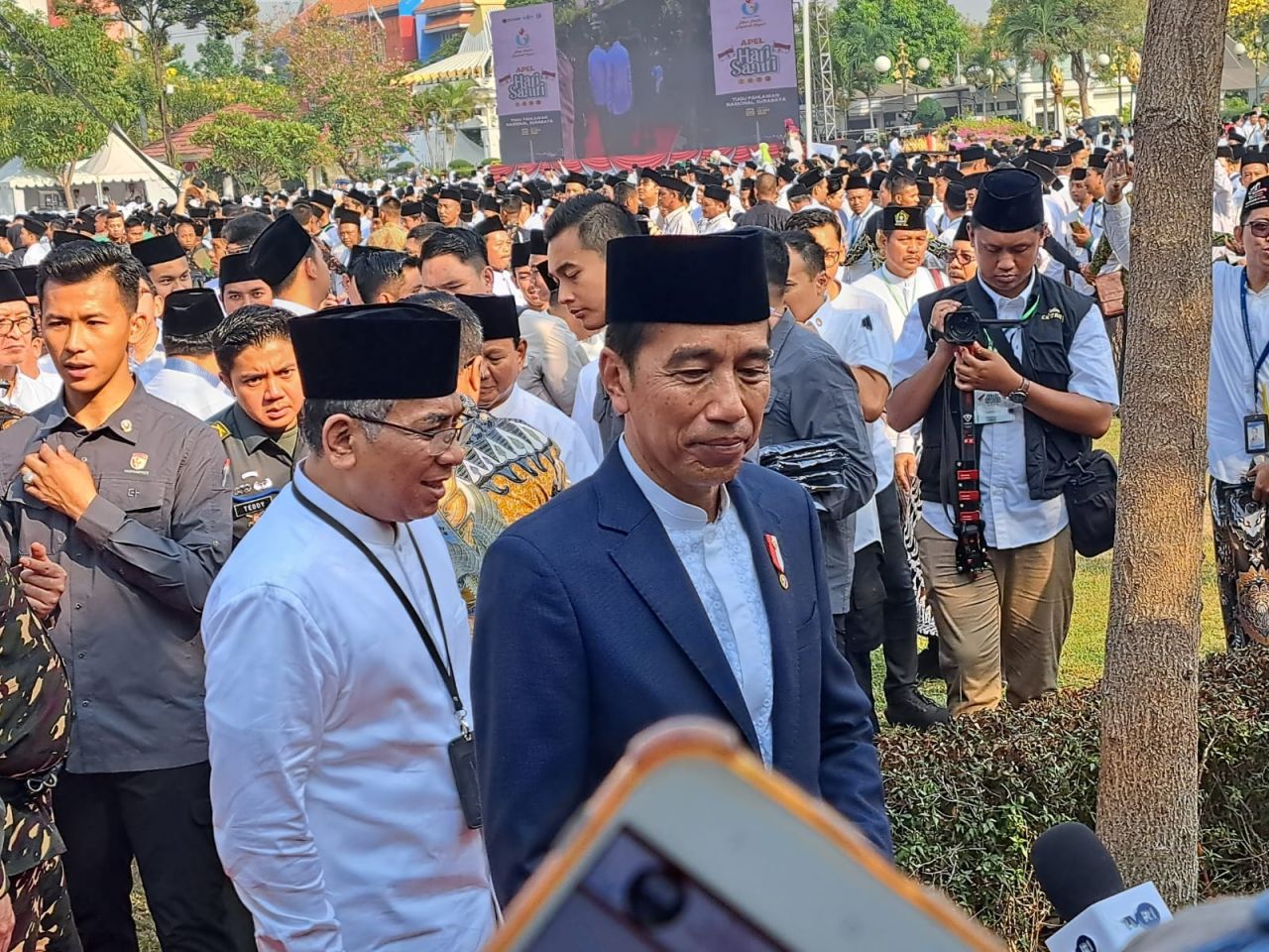 selalu.id - Presiden Joko Widodo (Jokowi) mengaku merestui putra sulungnya Gibran Rakabumimg Raka untuk maju sebagai Cawapres pendamping Prabowo pada Pilpres 2024. Hal ini diungkap saat Jokowi menghadiri acara Hari Santri di Tugu Pahlawan, Surabaya, Minggu (22/10/2023).