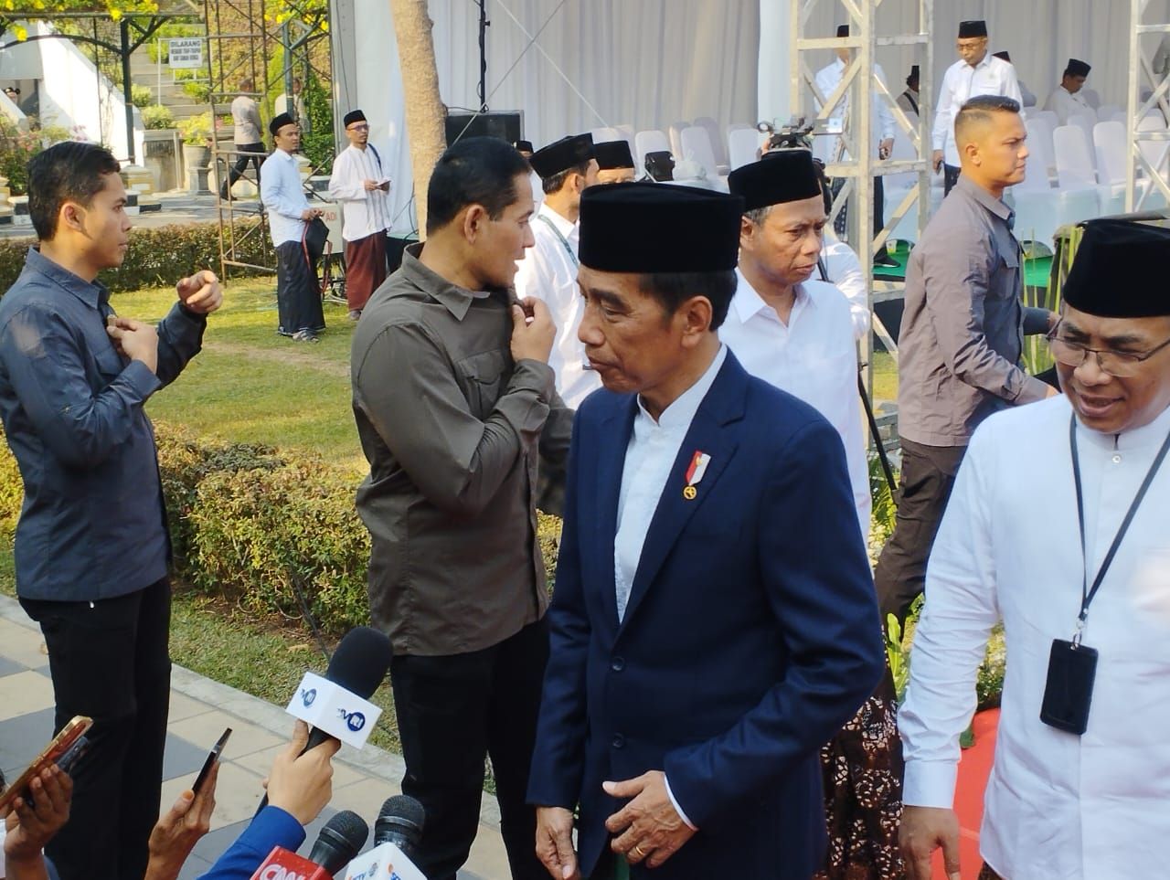 "Ya kan sudah satu minggu tidak ketemu. Ya biasa laporan laporan di hari Sabtu Minggu. Biasa dengan menteri ketemu, laporan,"kata Jokowi, kepada wartawan wartawan di acara Hari Santri 2023 di Tugu Pahlawan, Surabaya, Minggu (22/10/2023).
