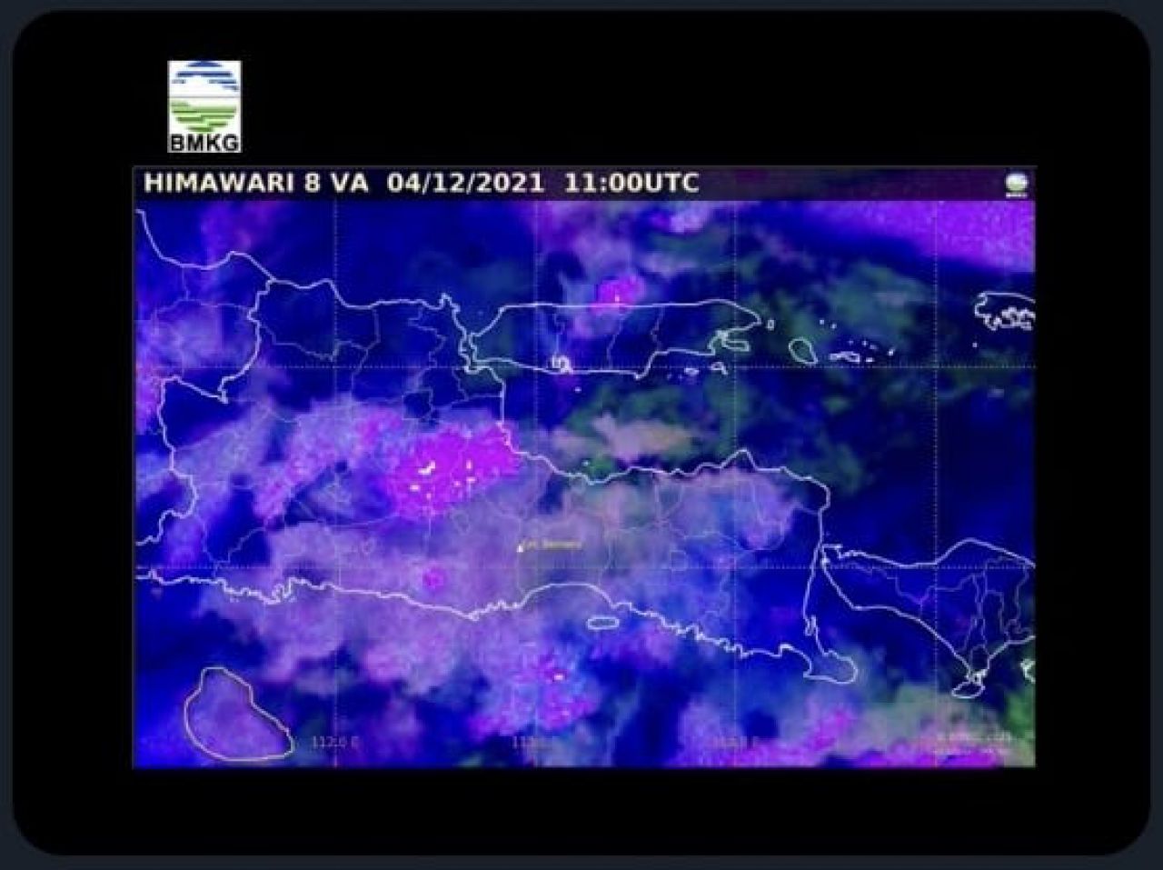 Sedangkan pantuan citra radar menunjukkan daerah sekitar gunung sumeru berawan.
