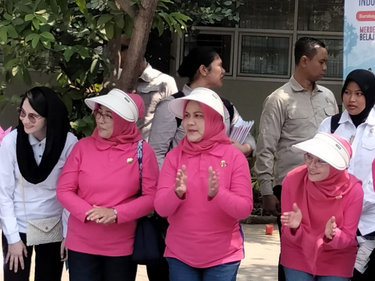 Tak hanya mereka, tampak pula Ketua Dewan Kerajinan Nasional Daerah (Dekranasda) Jawa Timur Arumi Bachsin dan Ketua Dekranasda Kota Surabaya Rini Indriyani.