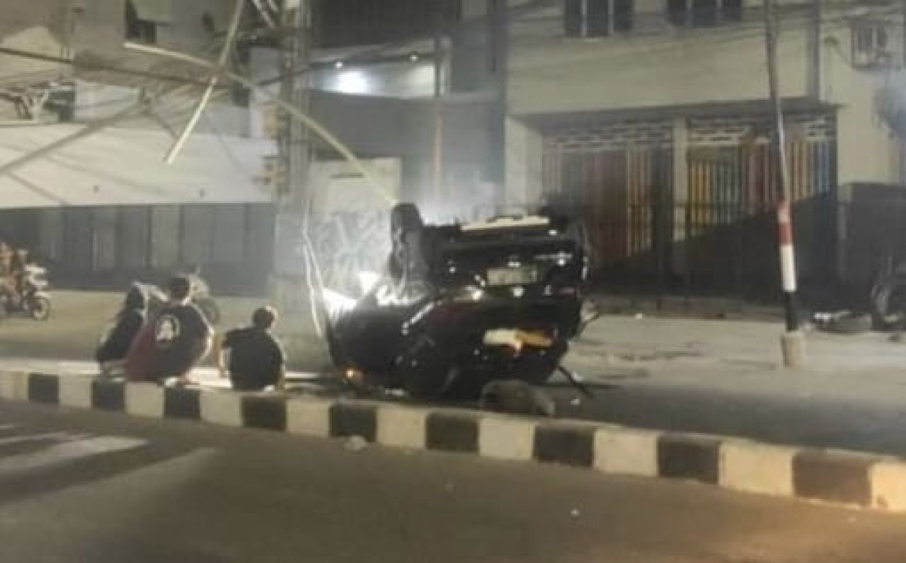 "Warga yang menyaksikan mengaku bahwa tiba-tiba mobil oleng, menabrak tiang PJU dan terbalik," ujar Buyung.