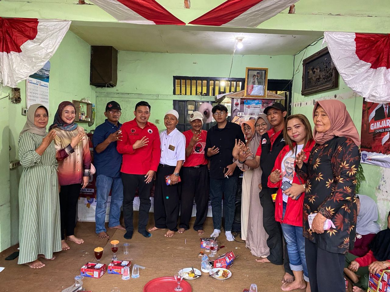 selalu.id - Calon Legislatif (Caleg) Jawa Timur dari PDI-Perjuangan Fuad Benardi meresmikan posko pemenangan pasangan calon (Paslon) Pilihan Presiden (Pilpres) nomor urut 3 Ganjar-Mahfud di Jalan Lebak Timur, Tambaksari, Surabaya, Minggu (26/11/2023).