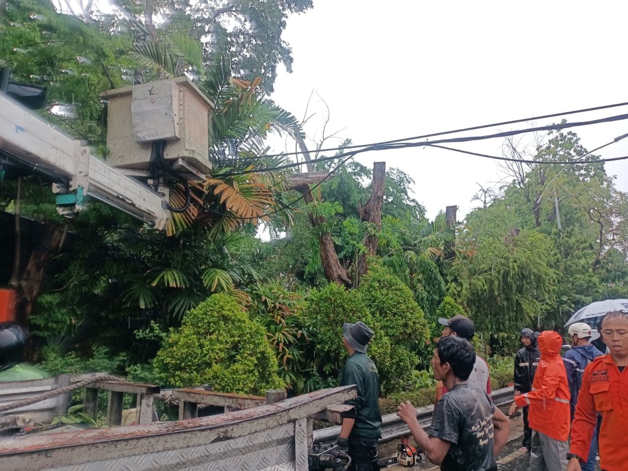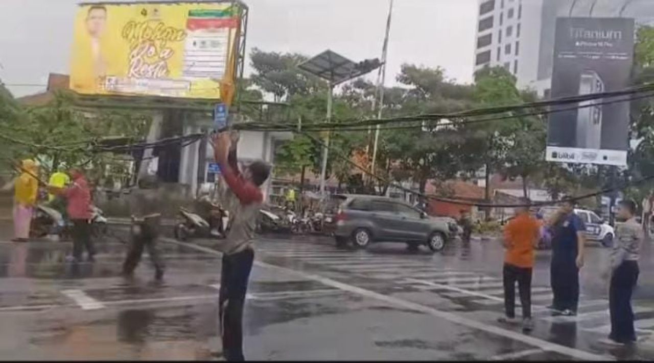 "Petugas tiba di lokasi langsung pemotongan ranting pohon yang ambruk di atas kabel-kabel," kata Rini, kepada selalu.id, melalui laporannya.